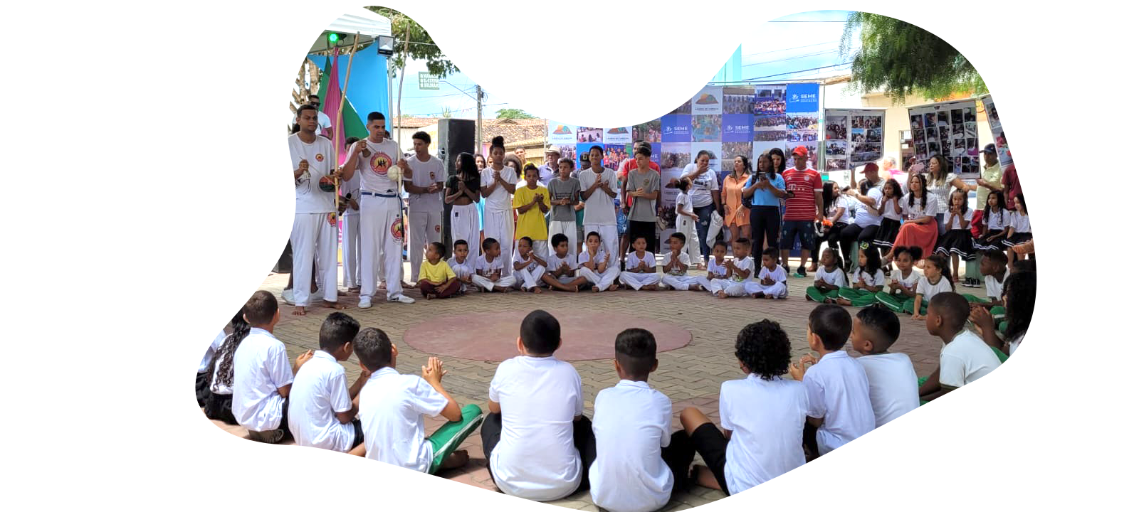 Roda de capoeira com estudantes das escolas públicas na III Mostra Pedagógica, em novembro de 2023.