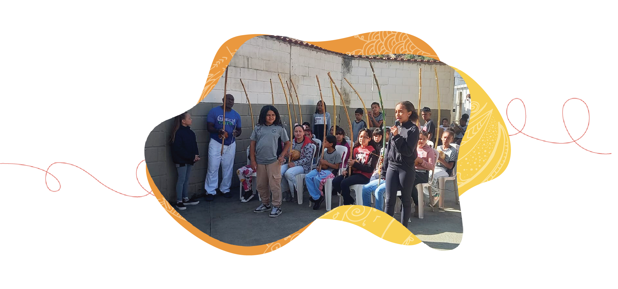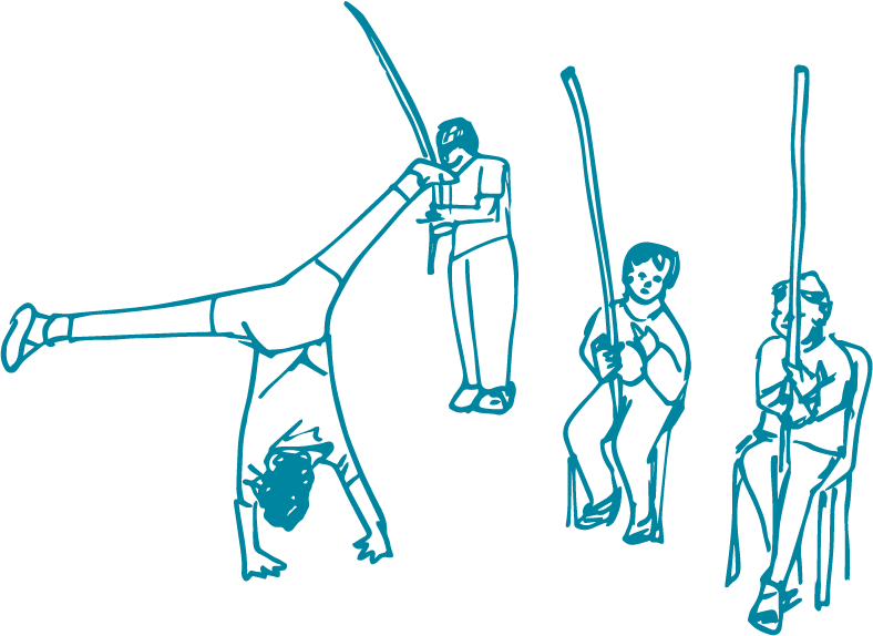 Orquestra de Berimbaus de estudantes.