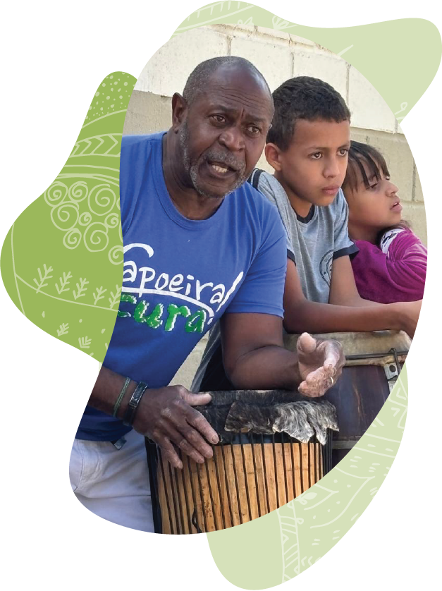 “Com estrutura ou sem estrutura, aqui a Educação Integral acontece de qualquer jeito. A gente aproveita o que tem de melhor na comunidade para a Educação Integral: as festas de São Benedito, a congada e o carnaval… A escola tem muito pouco espaço, então, a gente ocupa as praças. Se tiver espaço vazio na comunidade, a gente vai lá e ocupa.”