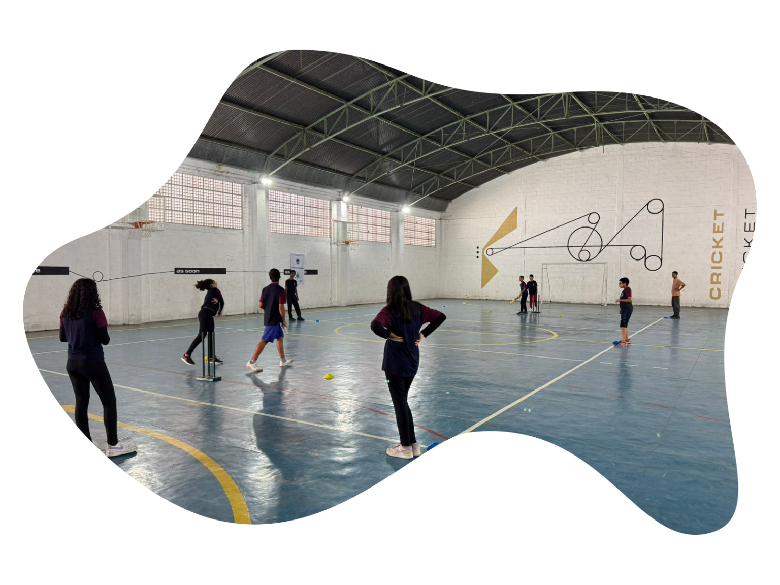 Estudantes praticando cricket.