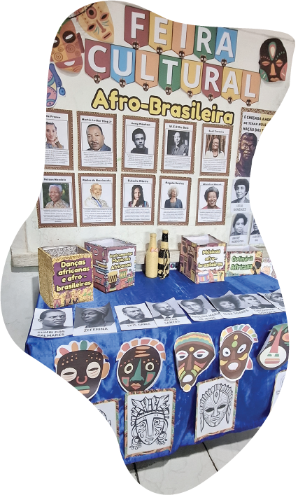 A Cultura Afro-Brasileira também é tema de atividades artísticas e culturais. Essa diversidade é trabalhada de diversas maneiras por meio de autorretratos, da culinária, da construção de máscaras e brinquedos, das brincadeiras, músicas, danças e instrumentos afro-brasileiros. A capoeira também é uma das atividades que as crianças mais gostam de realizar.