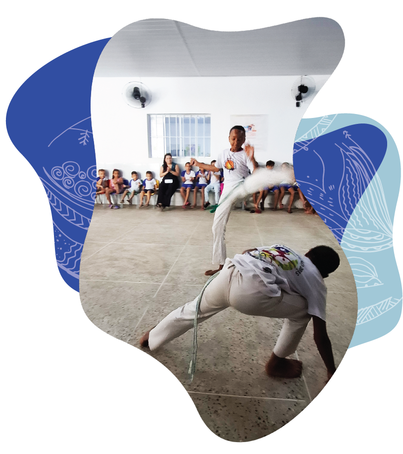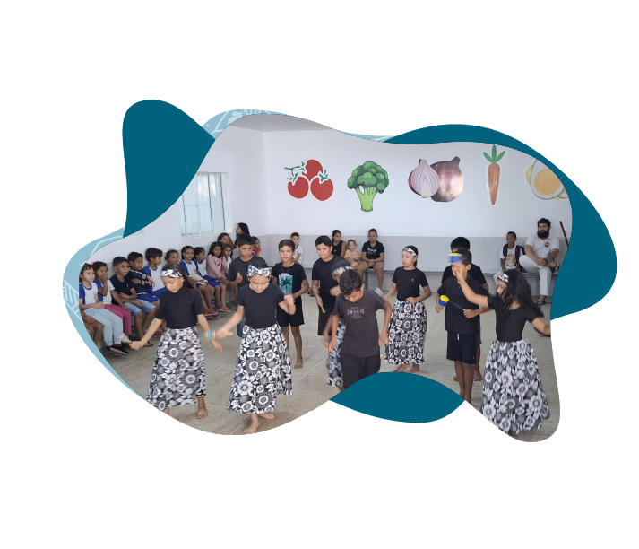 3º bimestre – as escolas desenvolveram projetos de pesquisa e produção artística, integrando atividades de capoeira, música, pintura, teatro e escrita criativa.