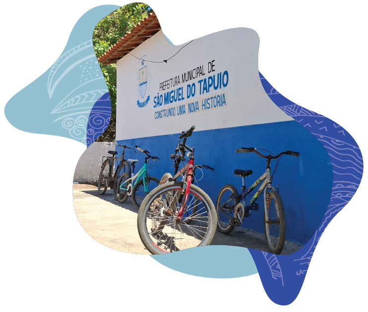 Bicicletas de estudantes estacionadas em frente à Escola Quilombola José Félix de Almeida.