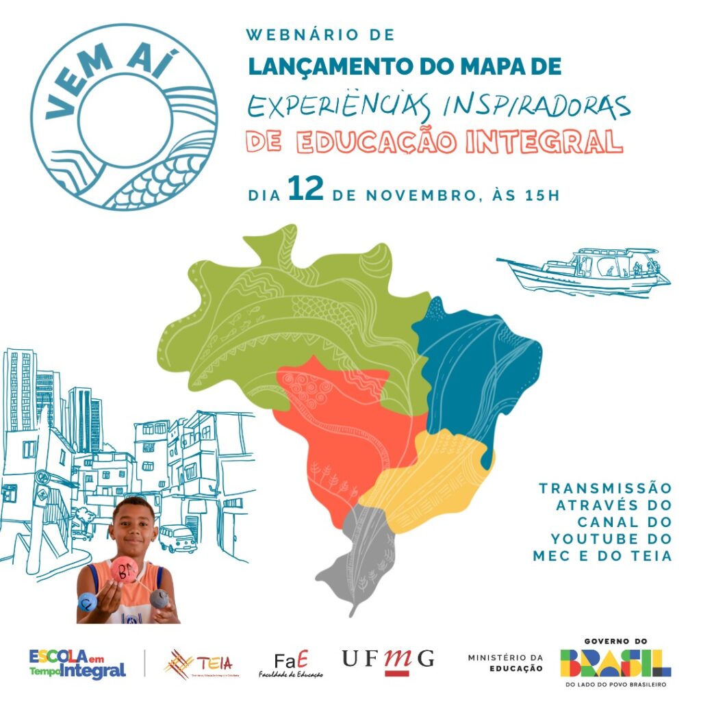 No dia 12 de novembro, às 15h, o Ministério da Educação, em parceria com o grupo TEIA/UFMG, apresenta o Mapa de Experiências Inspiradoras de Educação Integral em Tempo Integral, uma plataforma inédita que reúne 739 práticas de gestão e projetos pedagógicos realizados por escolas e redes de ensino de todo o país. Participe e conheça esse rico acervo que inspira e fortalece a Educação Integral em todo o país!